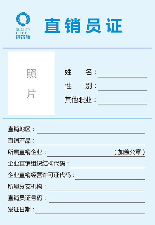 >直銷(xiāo)員證樣本